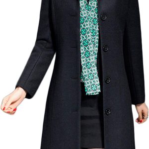 Women’s Big Notch Lapel Single Breasted Mid-Long Wool Blend Coat