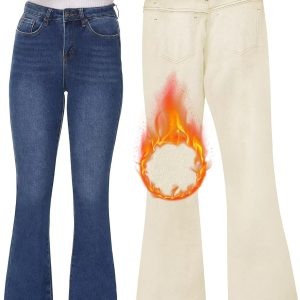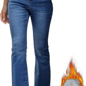 Women’s Winter Fleece Lined Thermal Flare Bootcut Jeans High Waist Denim Pants