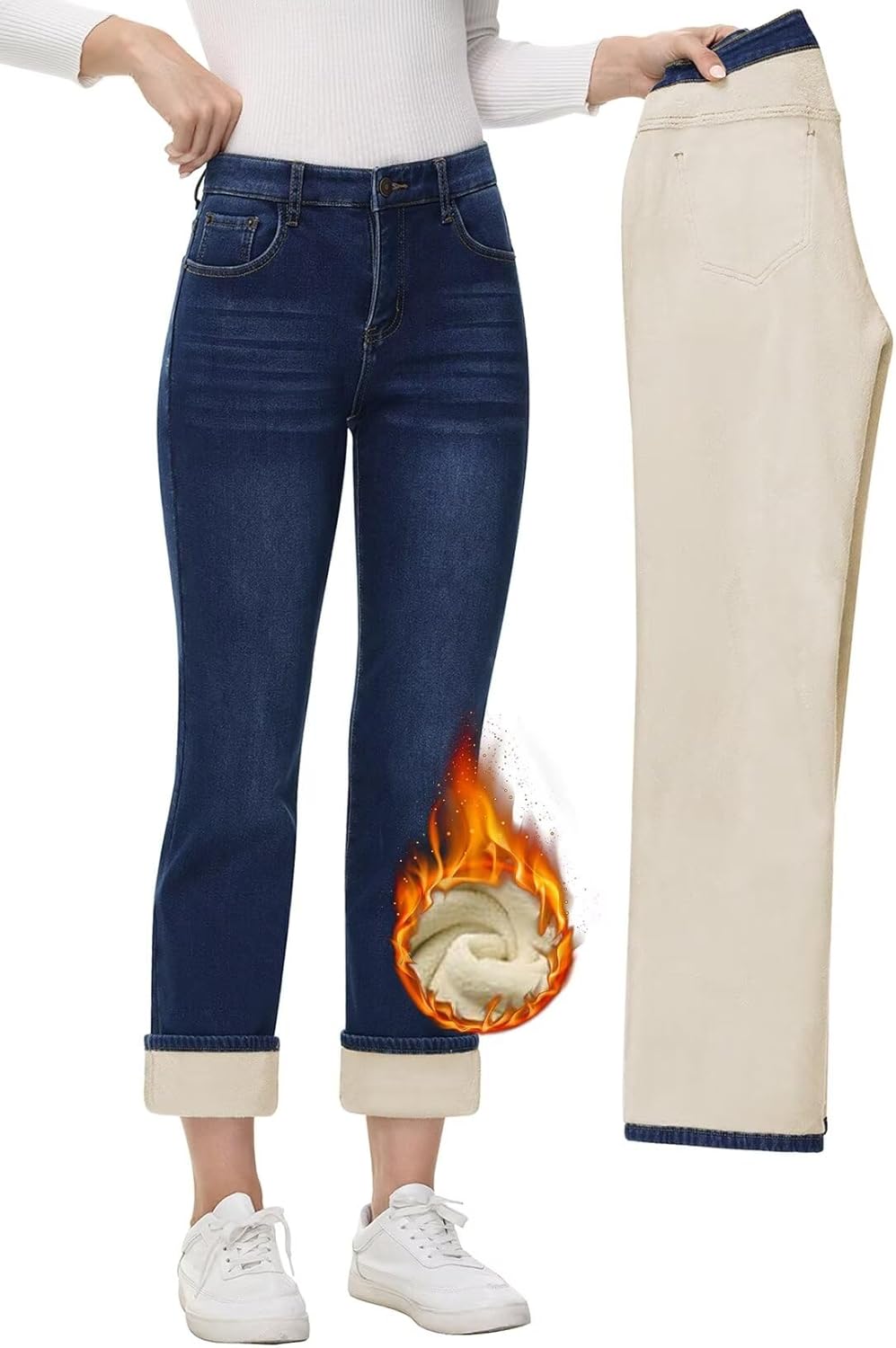 Classic Straight Leg Fleece Jeans: These stylish denim pants feature a timeless design with basic 5 pockets, a front button and zippered closure, and belt loops. Designed with butt lifting and body-sculpting lines, these thick, slim-fit fleece jeans will enhance your figure and make you stand out in any crowd. Get ready for compliments!